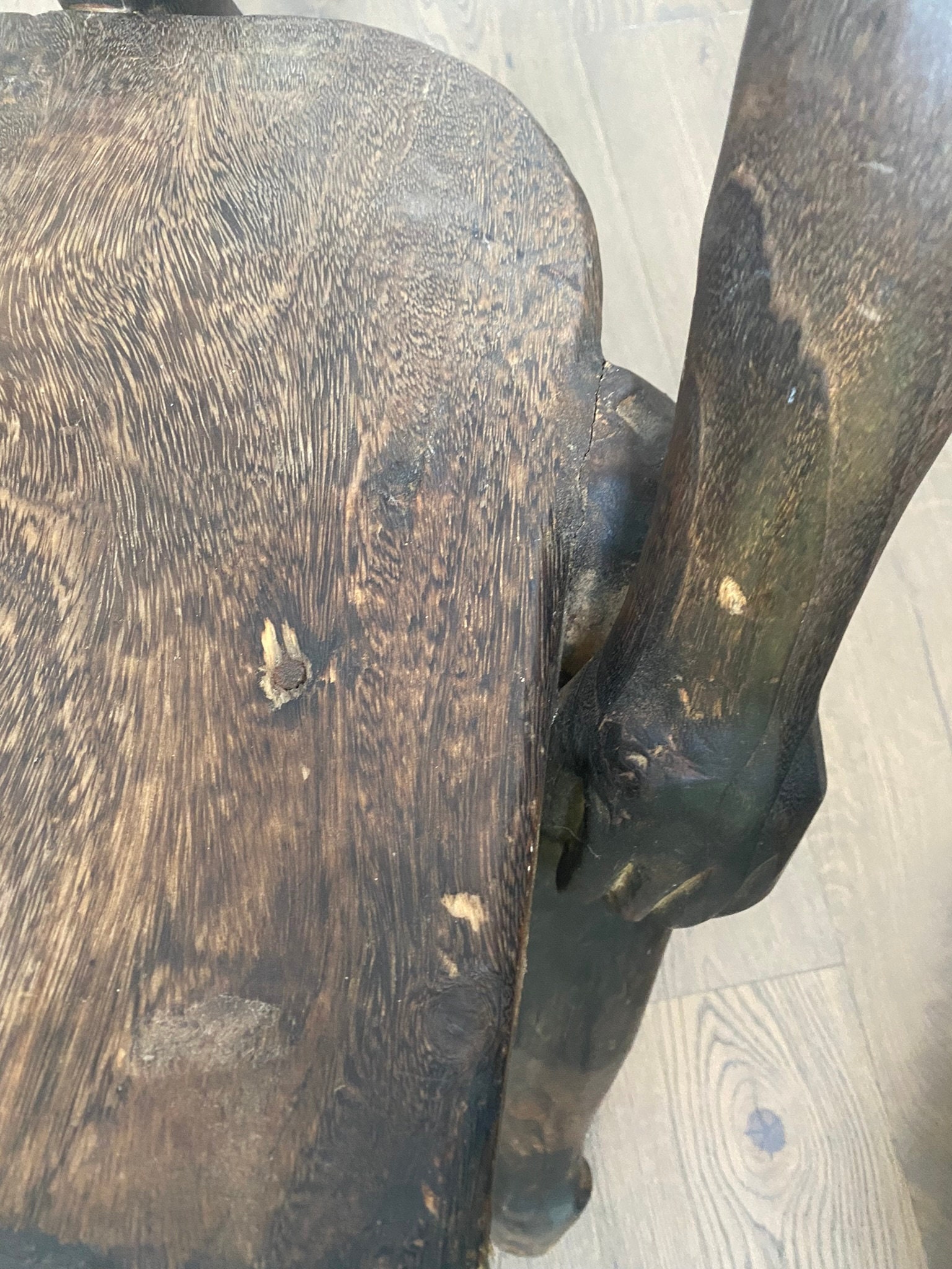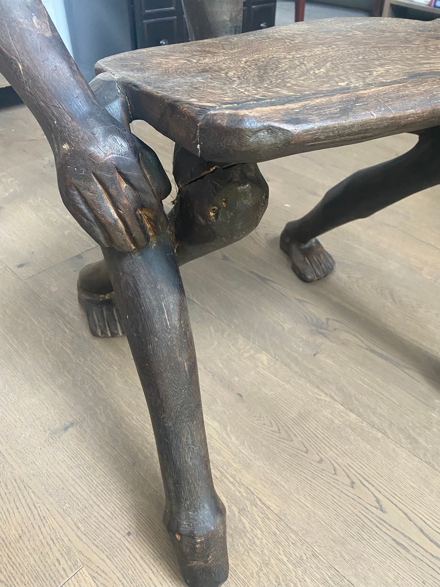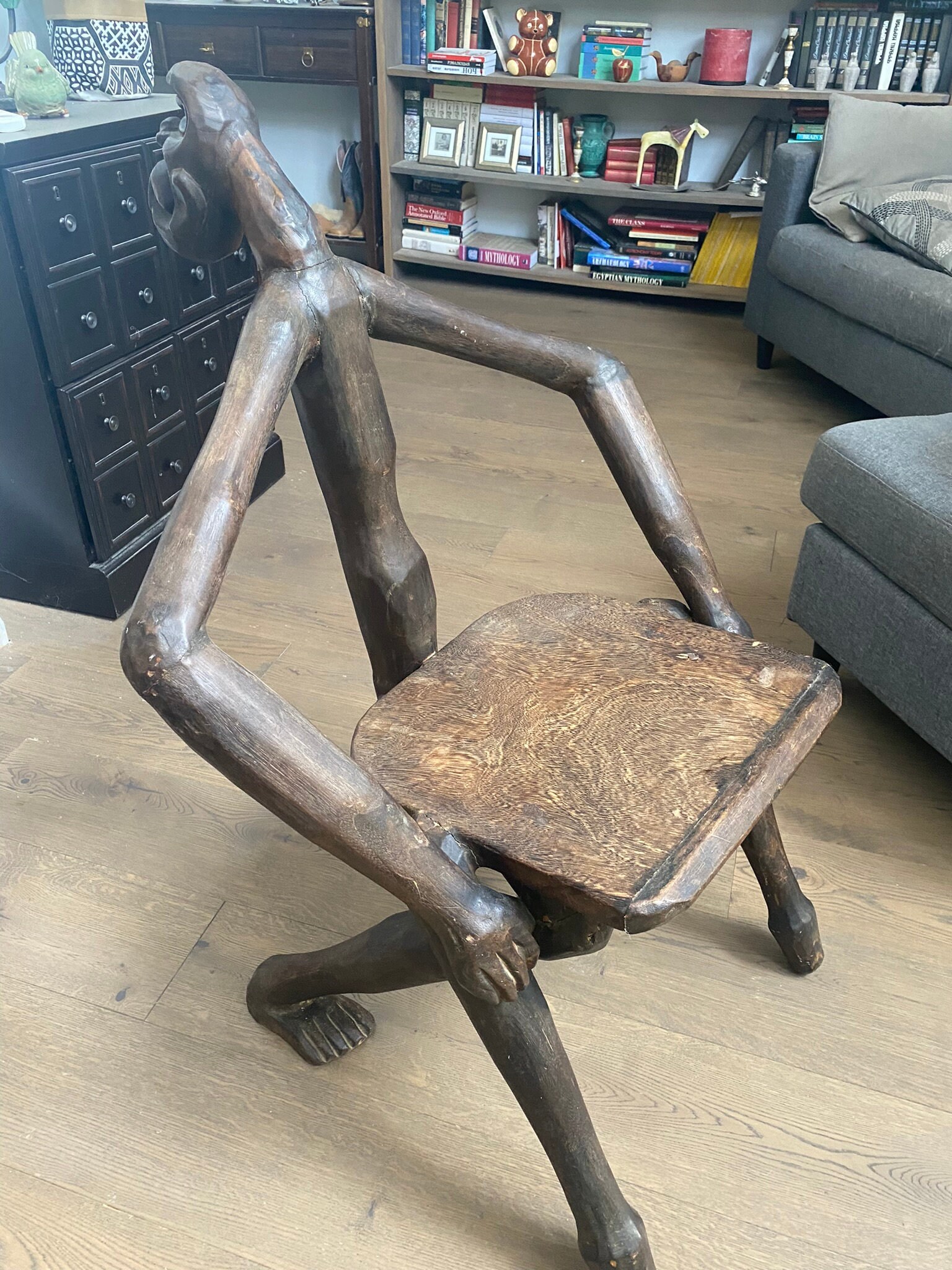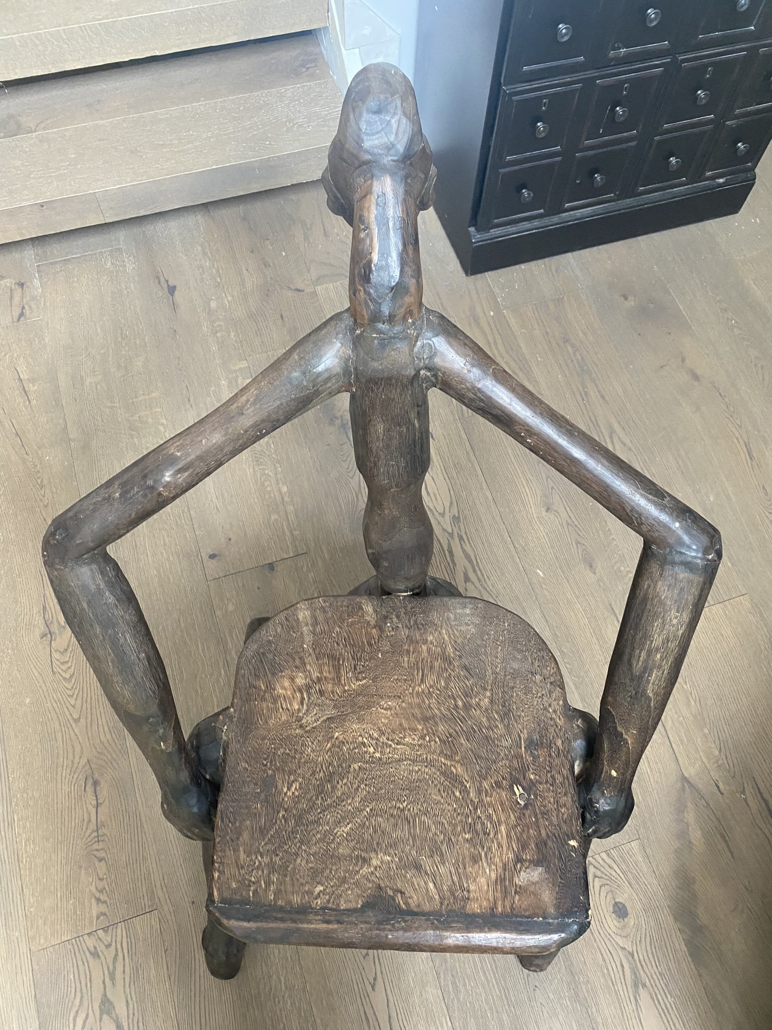 Hand-Carved Surrealist African Figural Chair — Anthropomorphic Dark Wood — Vintage Collectible