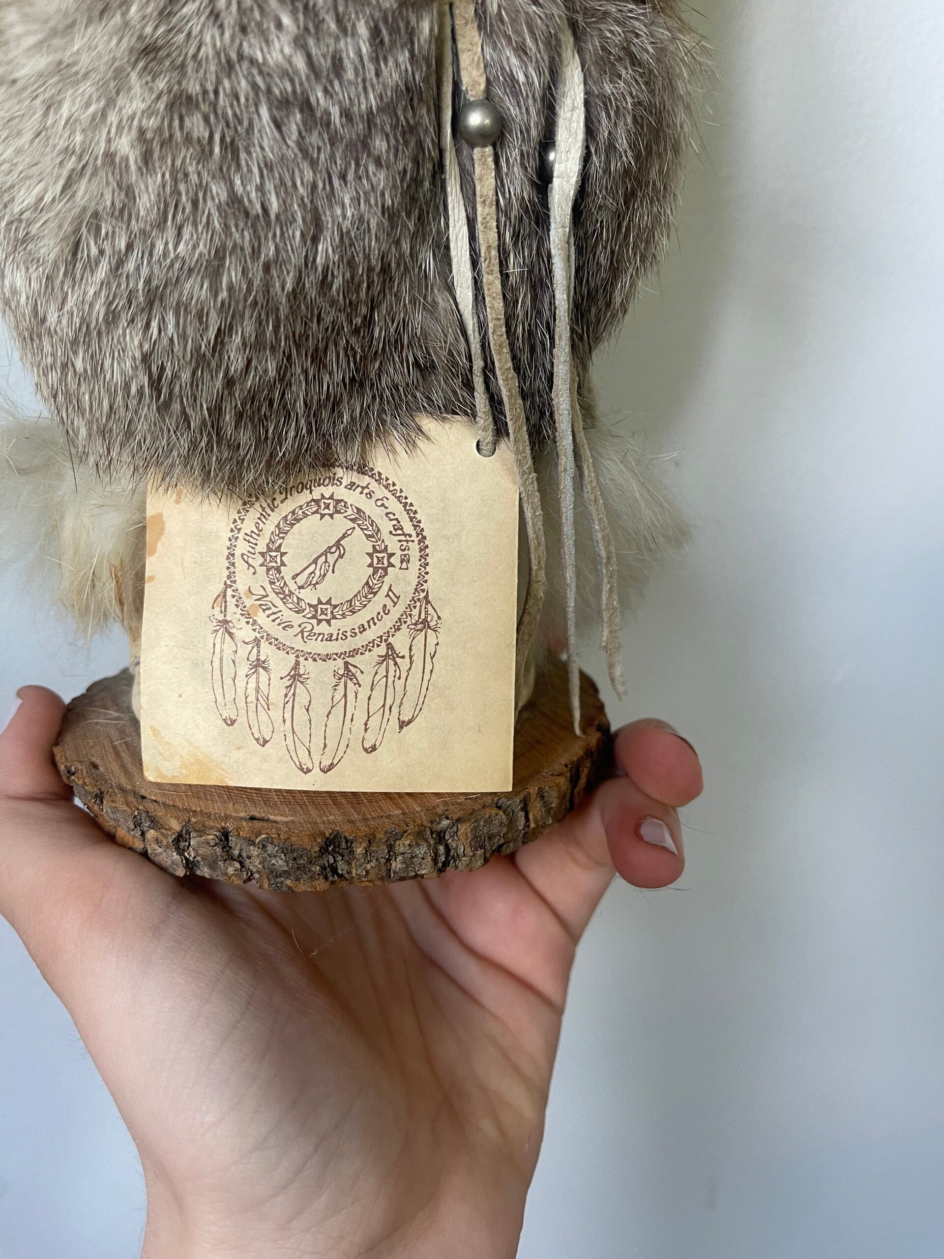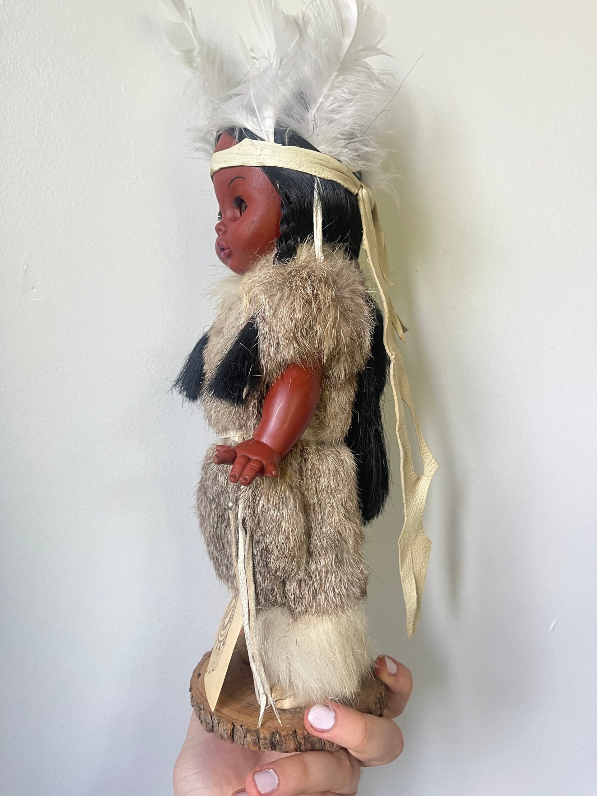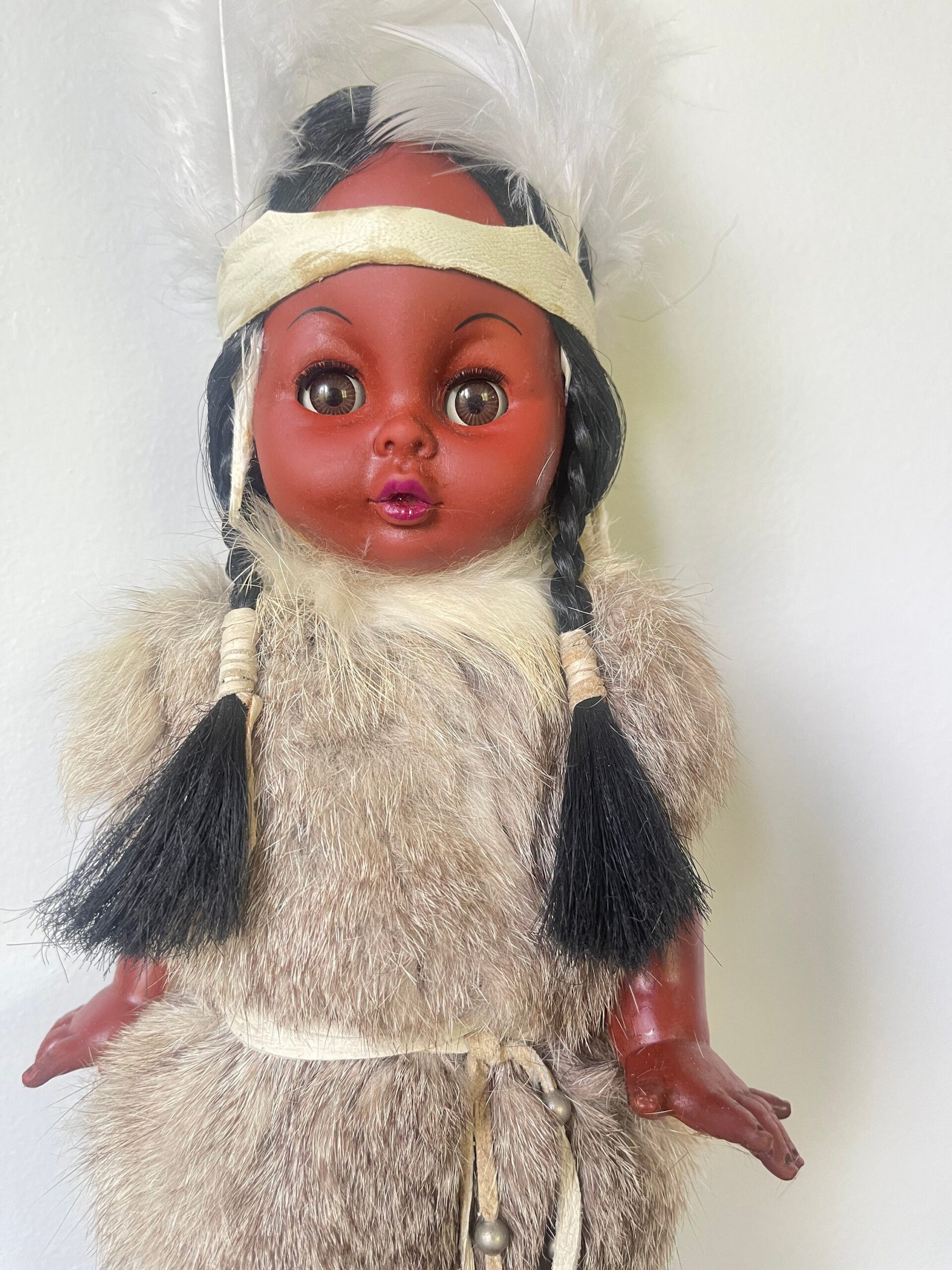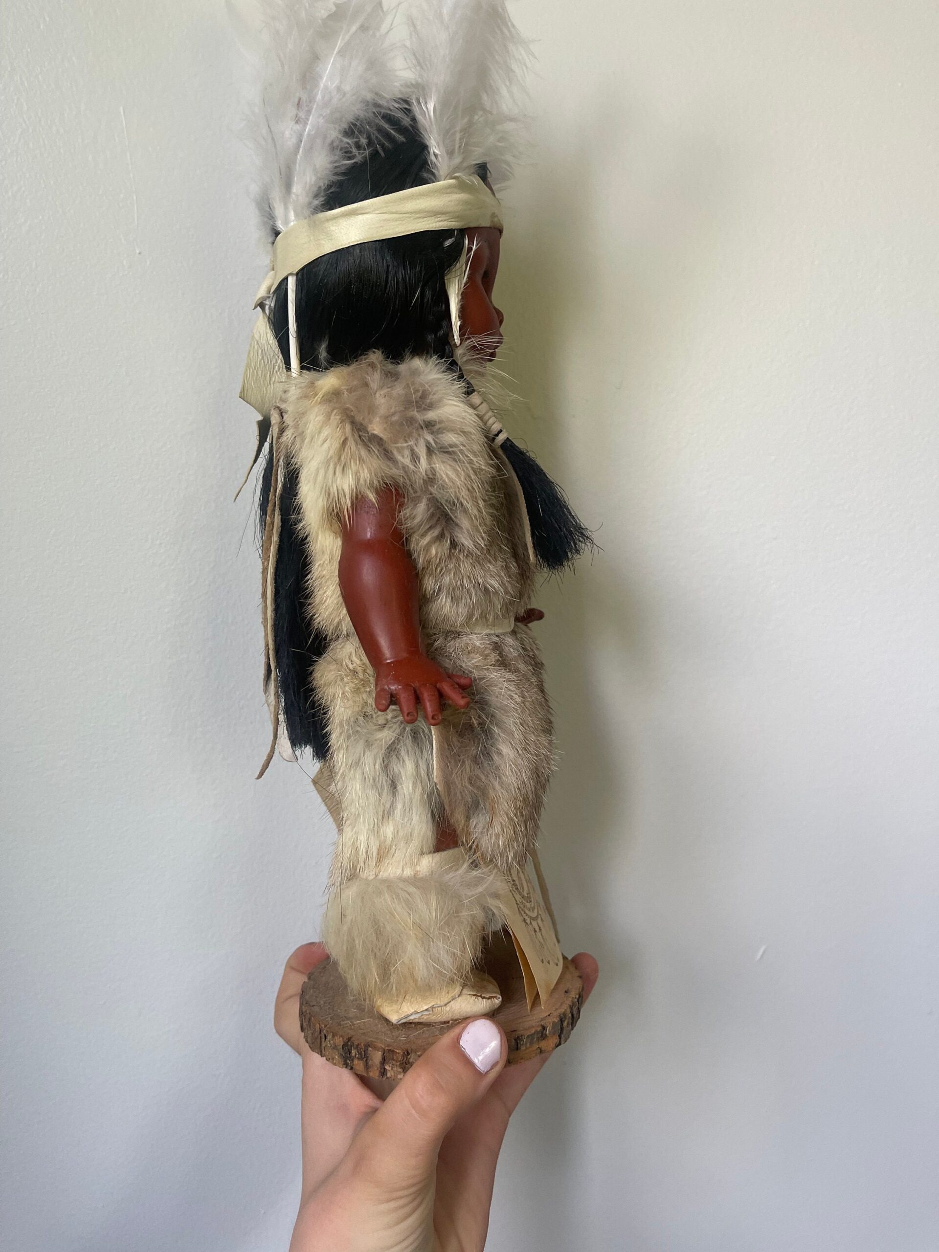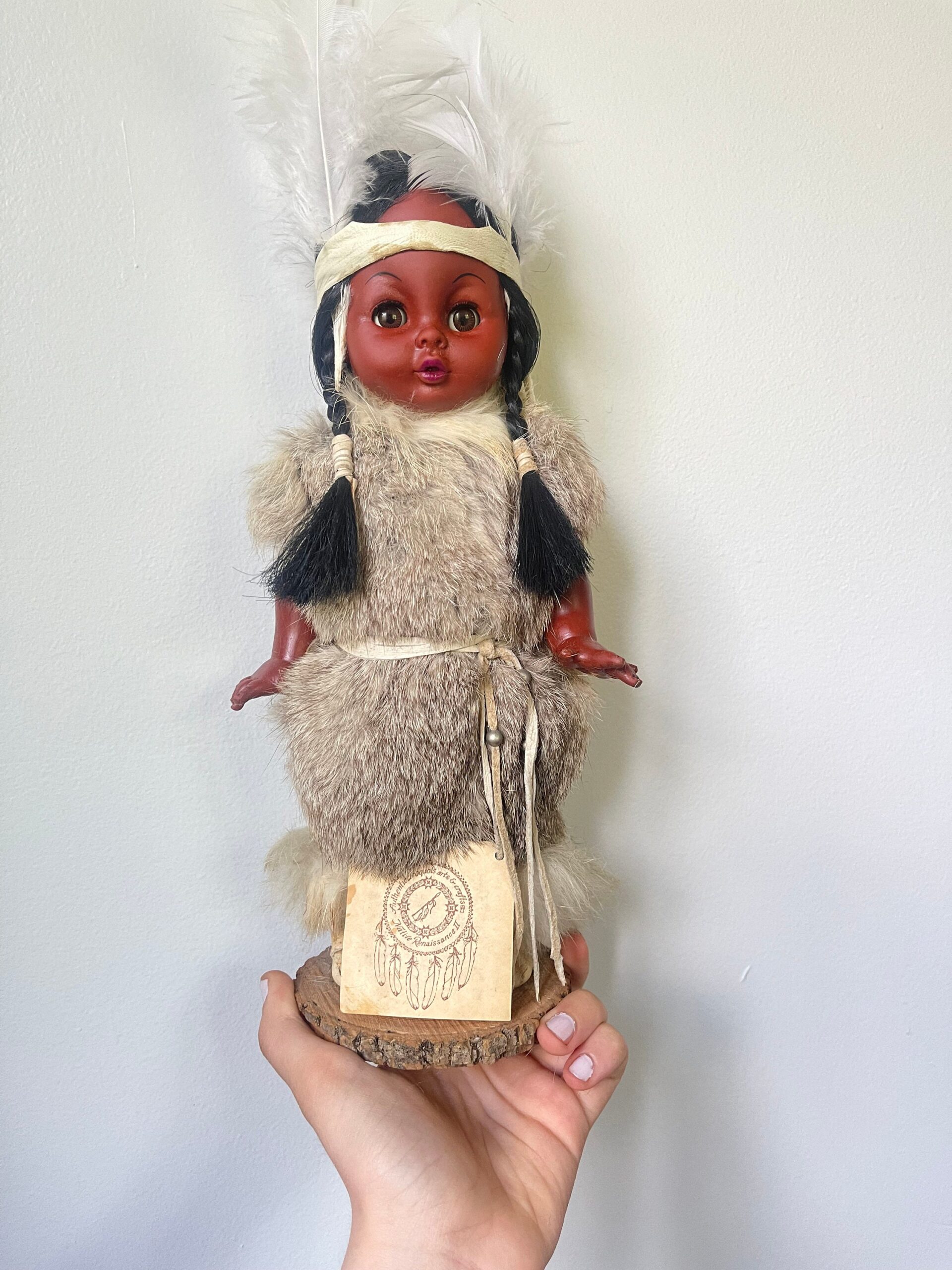 A 16-inch vintage porcelain doll in a dusty rose dress with a matching bonnet. Victorian-inspired charm with delicate hand-painted features.