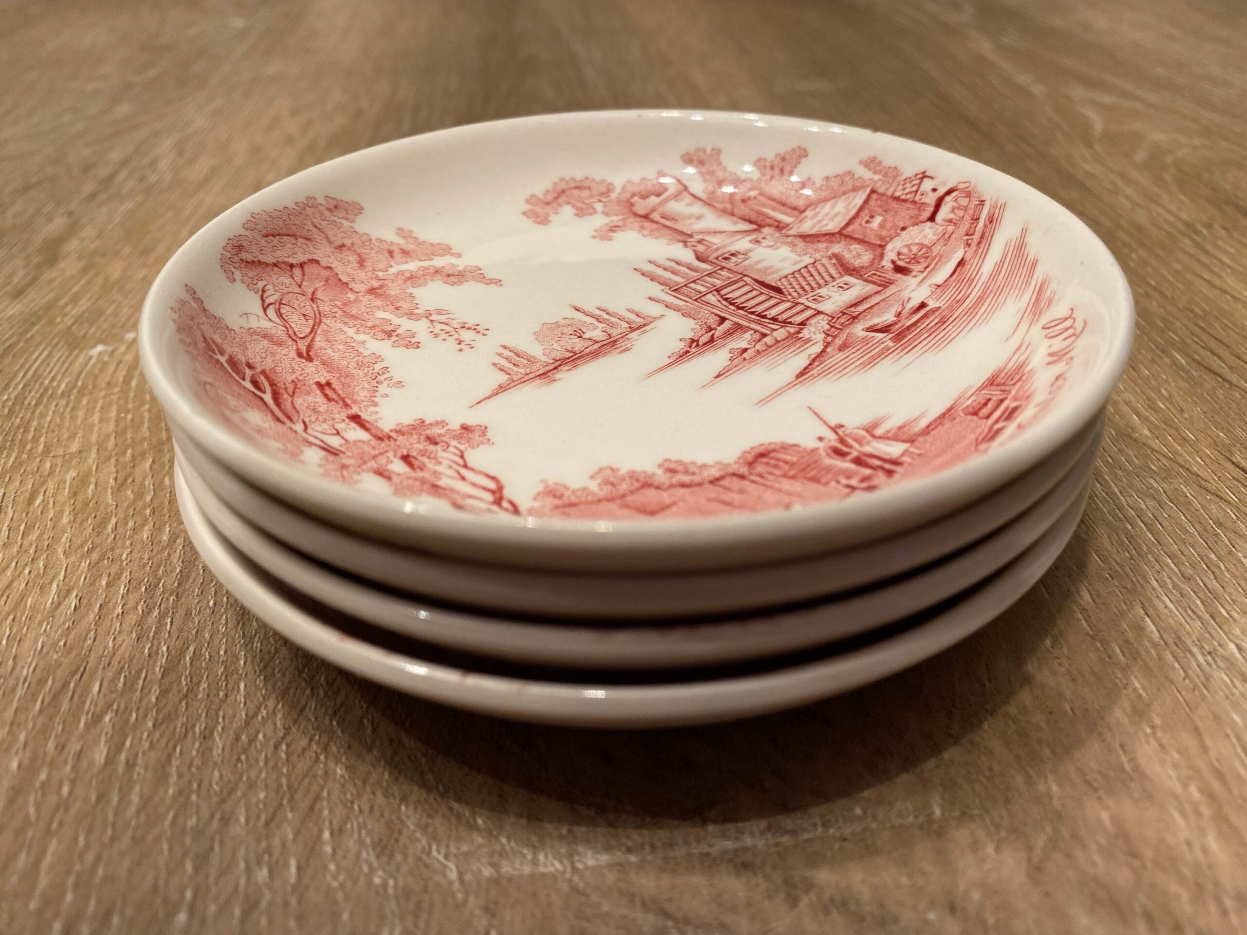 A set of four charming miniature plates by Johnson Brothers (England) in the “Watermill” pattern. Each measures 4.2 inches — perfect for display.