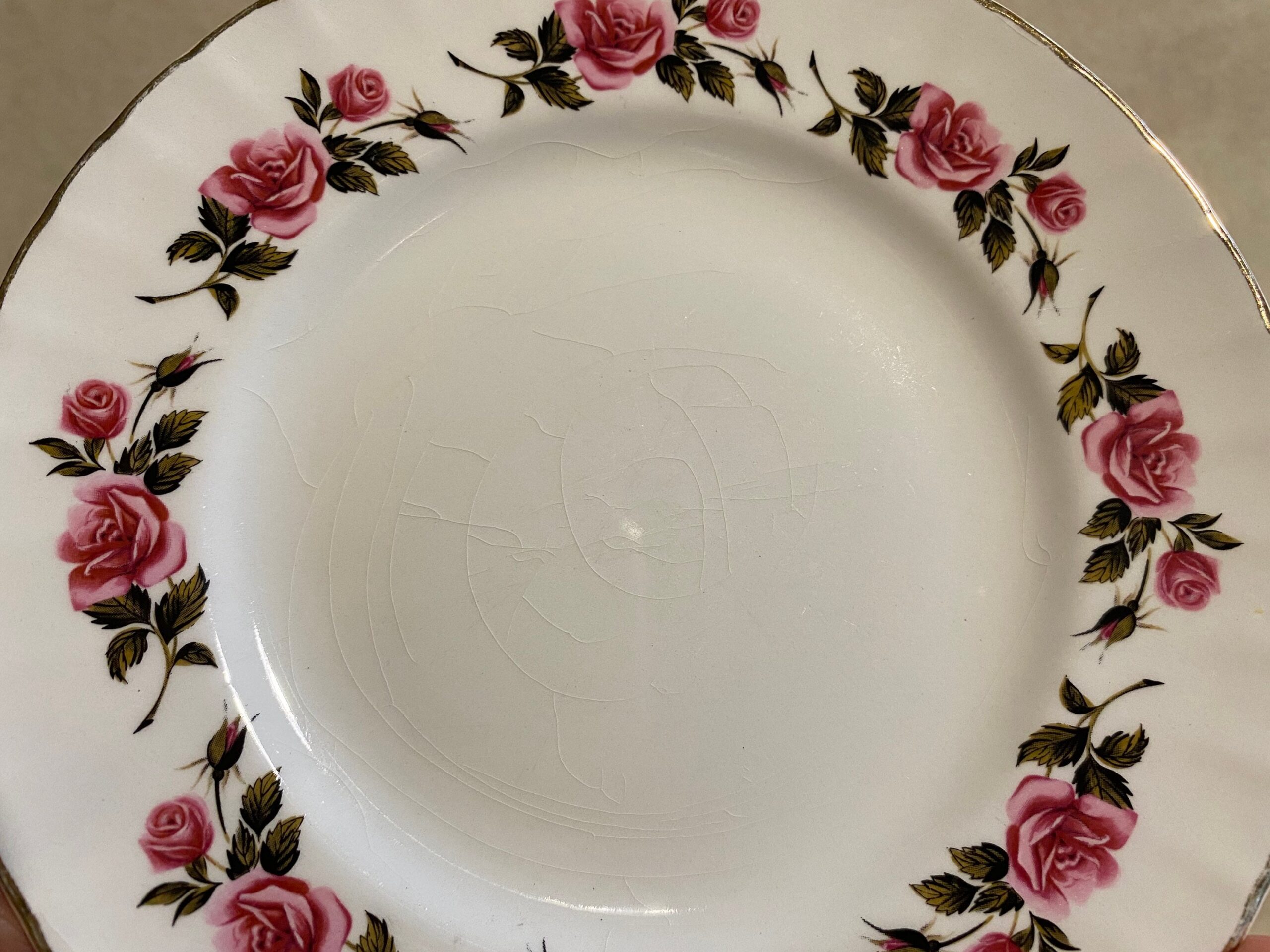 Ridgeway has been a respected name in English ceramics for centuries, and their gold-trimmed pieces are particularly prized by collectors. The plates measure approximately 17cm in diameter. Please note that one plate shows very fine crack lines in the glaze (crazing), which is common in vintage ceramics of this age.