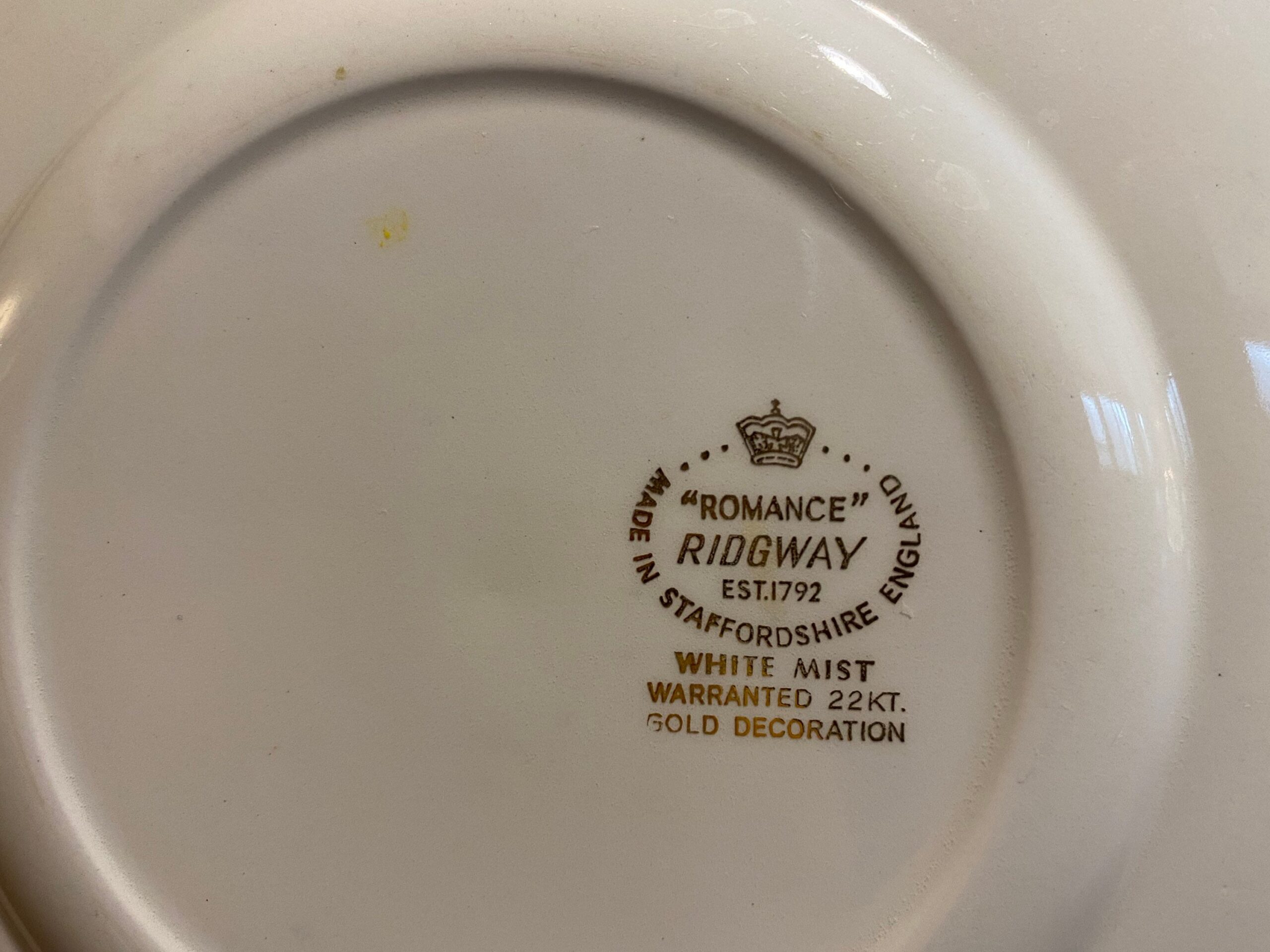 Ridgeway backstamp (Staffordshire, England). Romance series.
