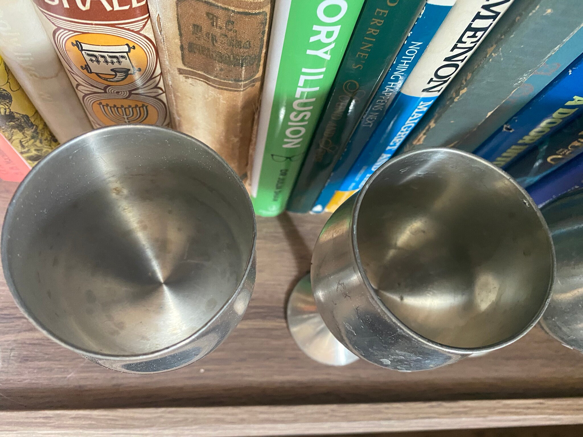 A gorgeous set of five vintage tulip-shaped goblets by Royal Selangor, the world’s largest pewtersmith. Crafted in Malaysia from high-quality pewter.