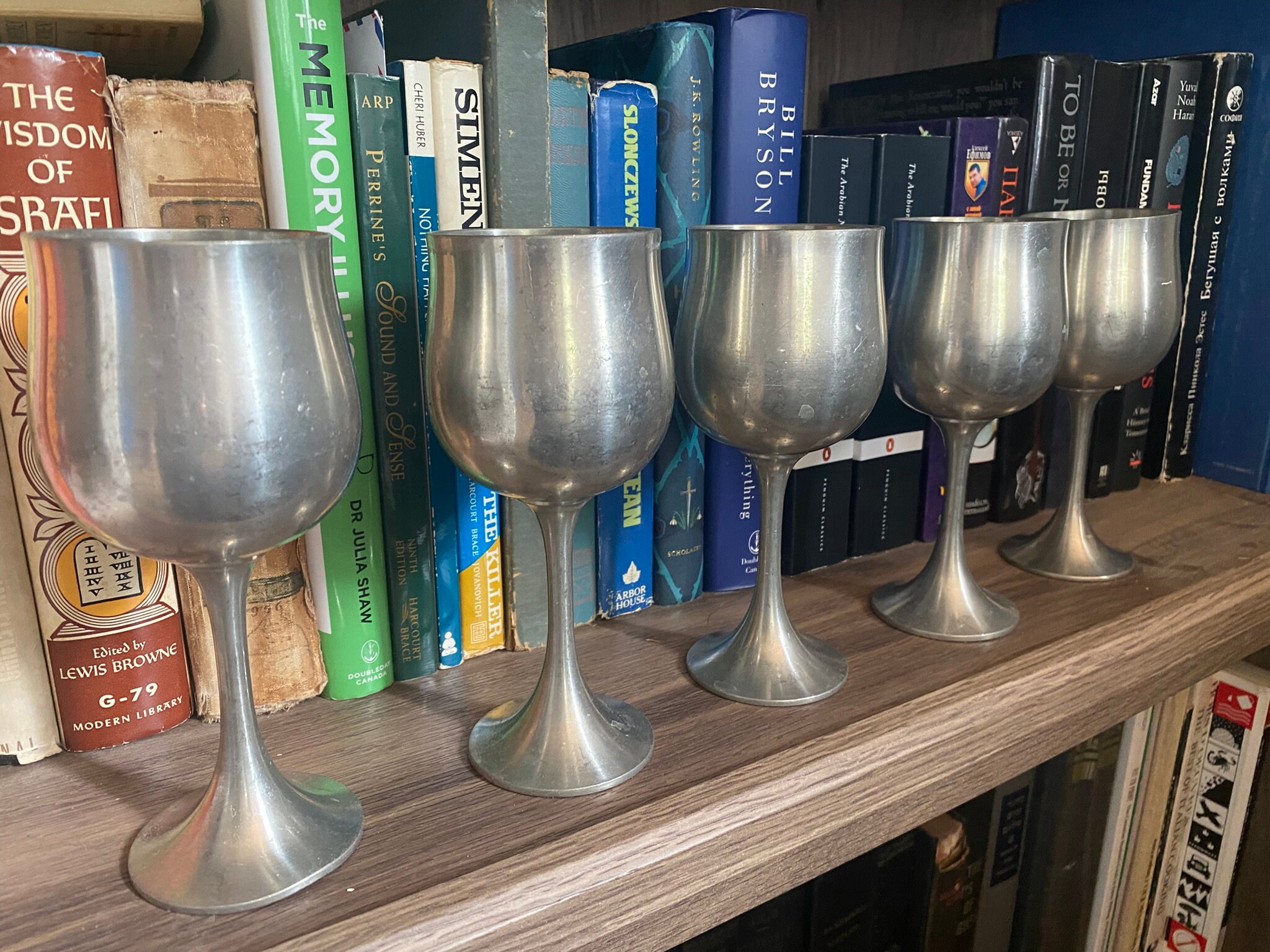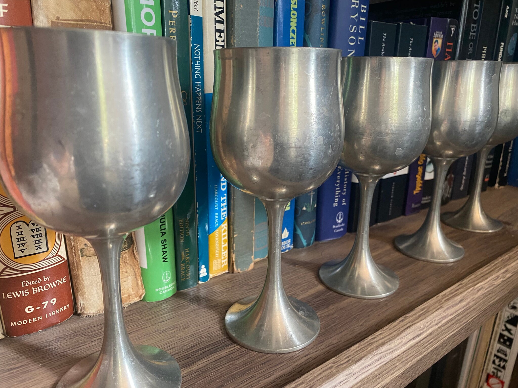 Set of 5 Vintage Pewter Tulip Goblets — Royal Selangor — Malaysia