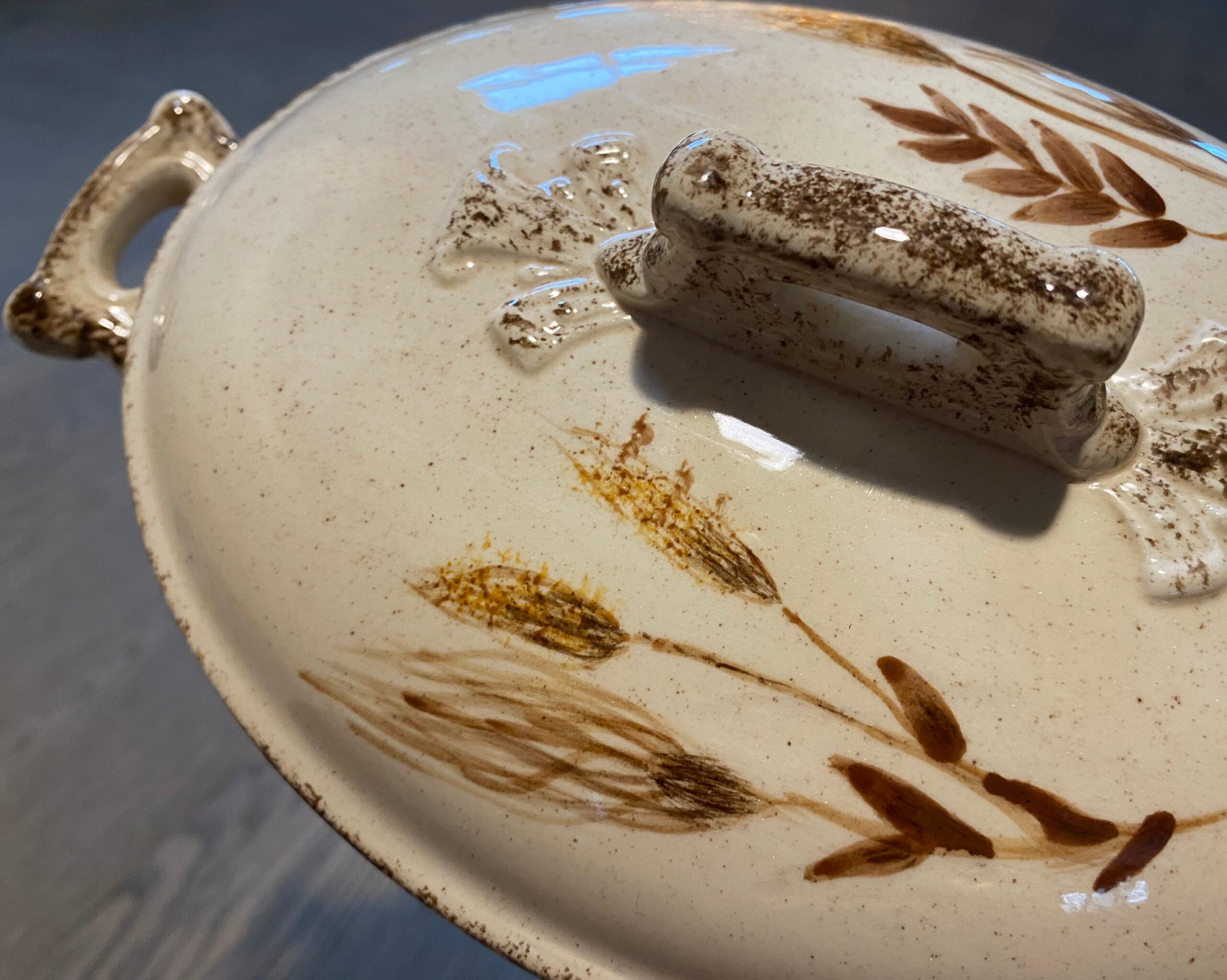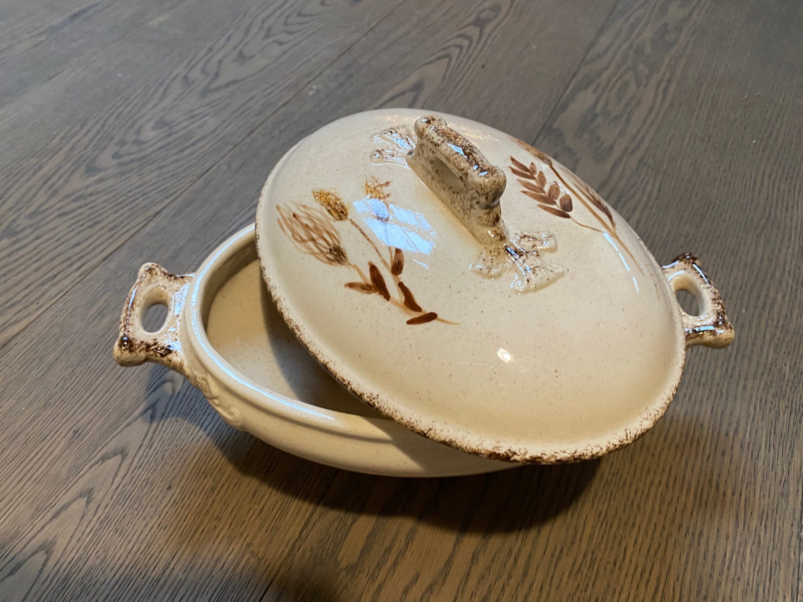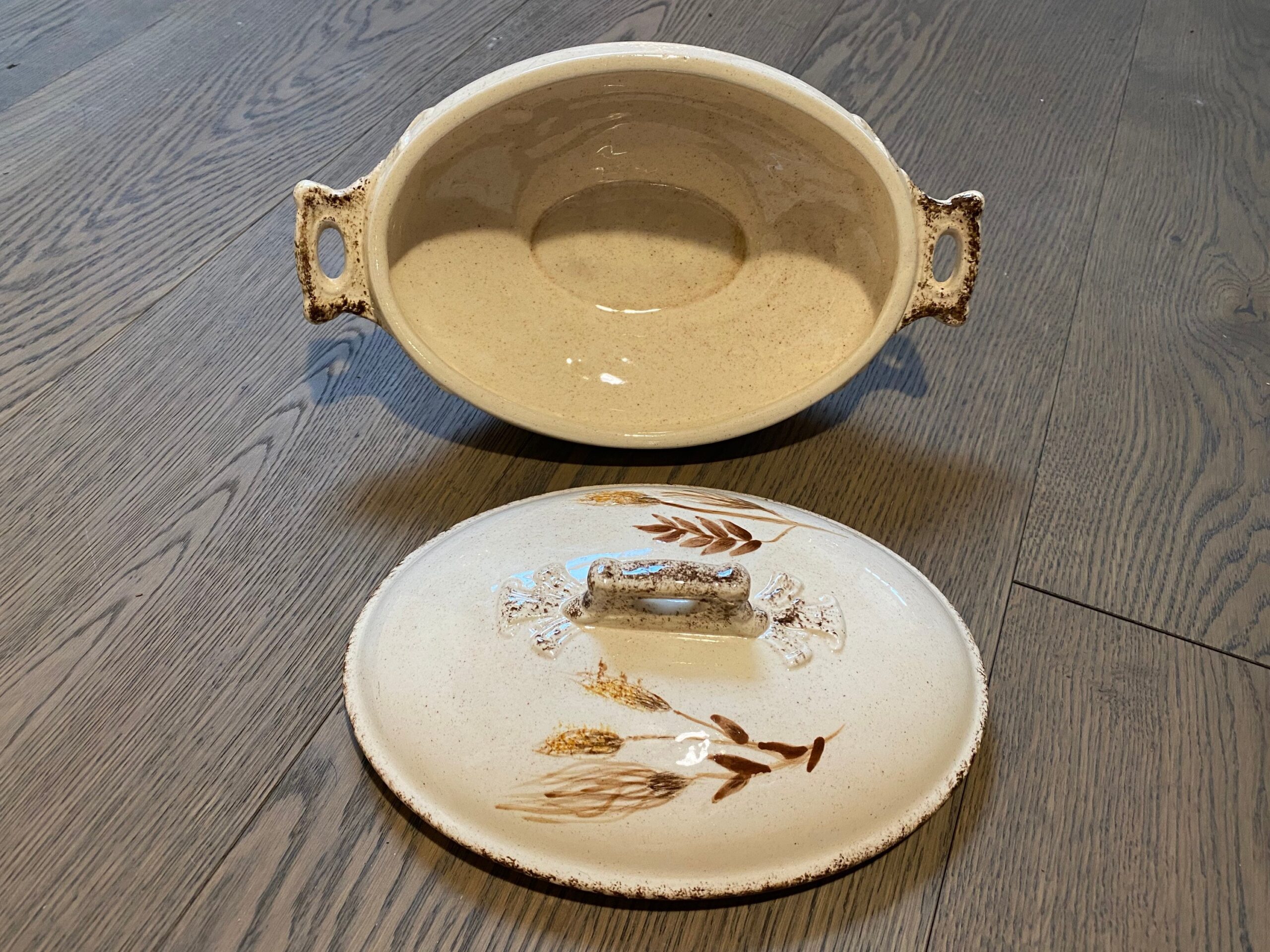 Vintage Ceramic Vegetable Serving Dish with Lid — Hand-Painted Collectible