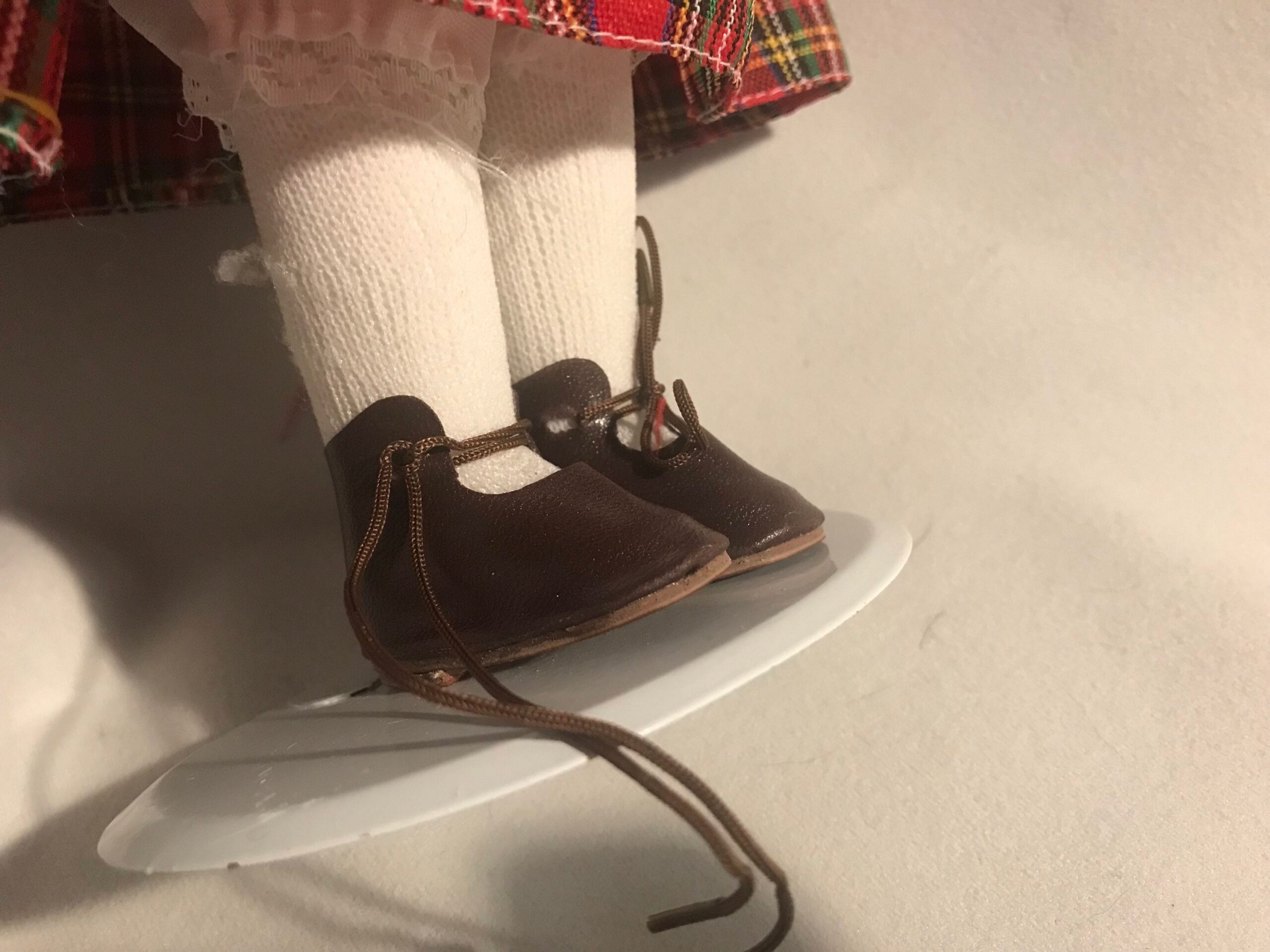 Vintage Porcelain Doll — Plaid & Purple Dress — 16″