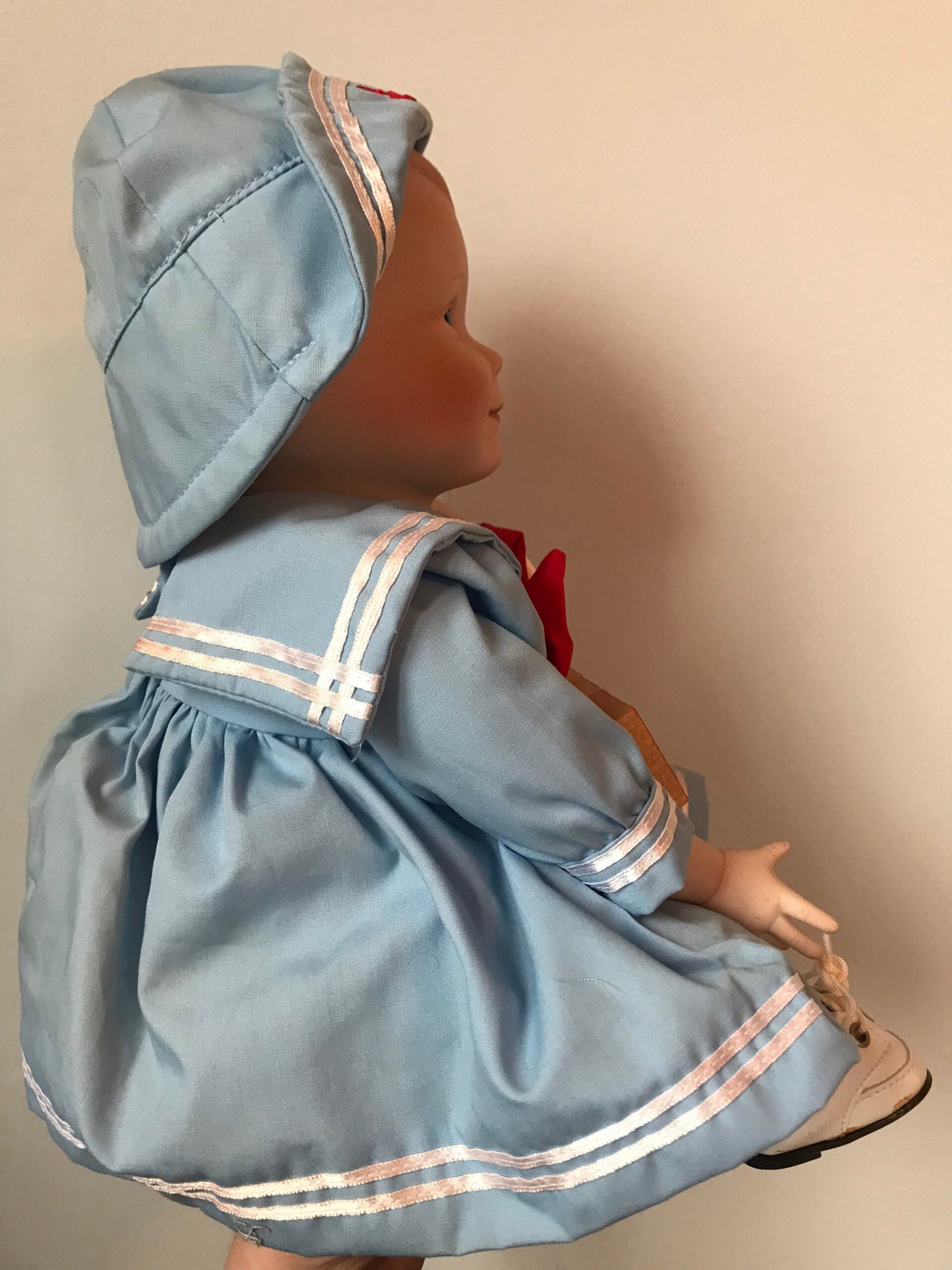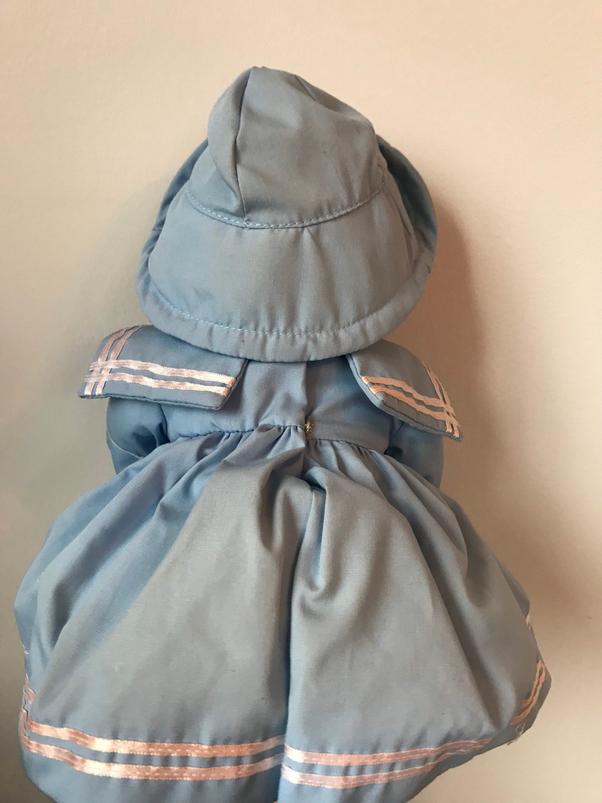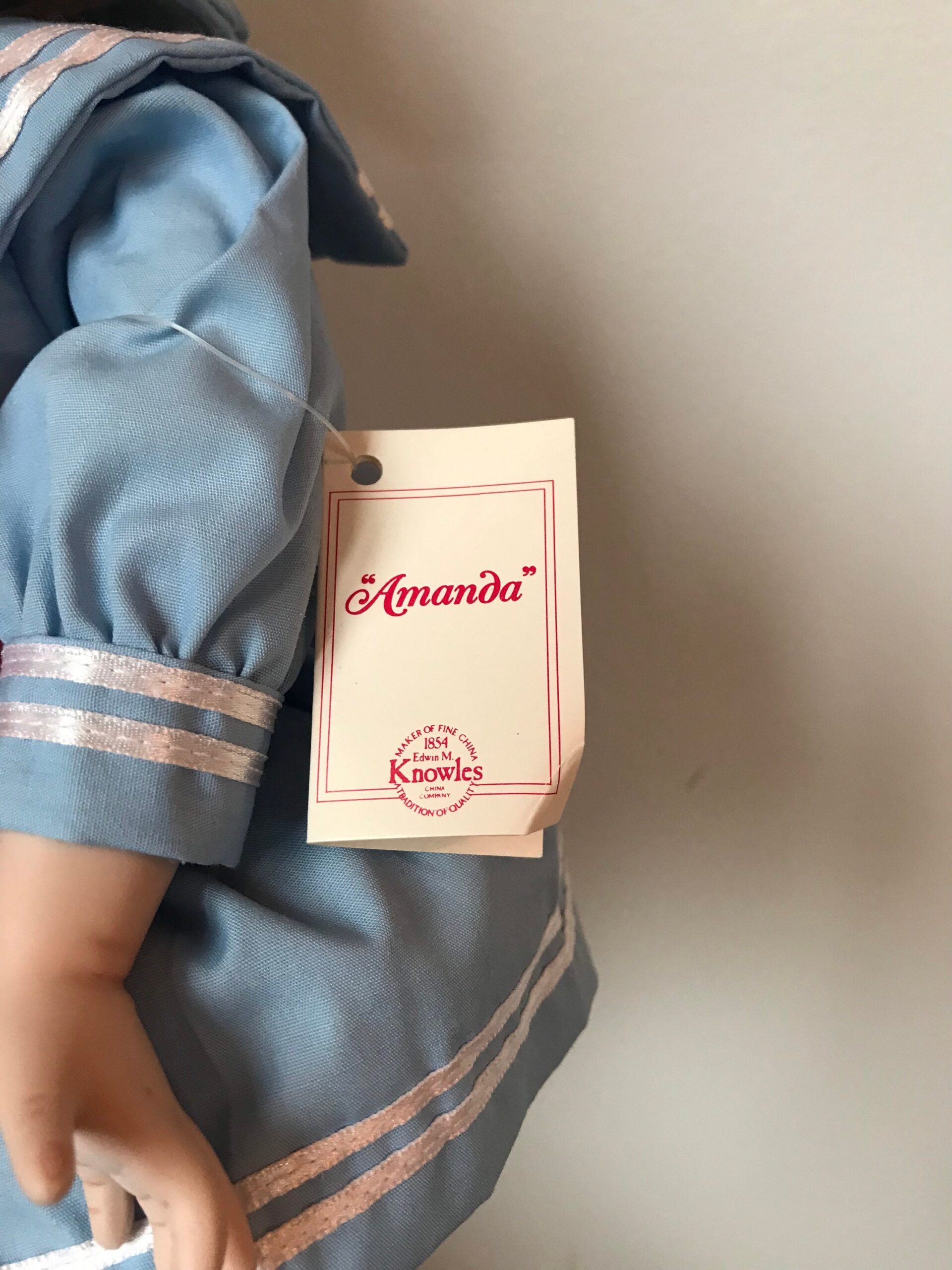 A 16-inch vintage porcelain doll in an elegant ivory lace gown. Bridal-inspired styling with refined craftsmanship.